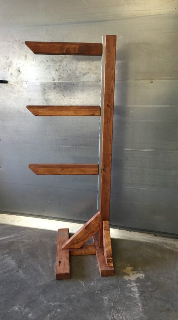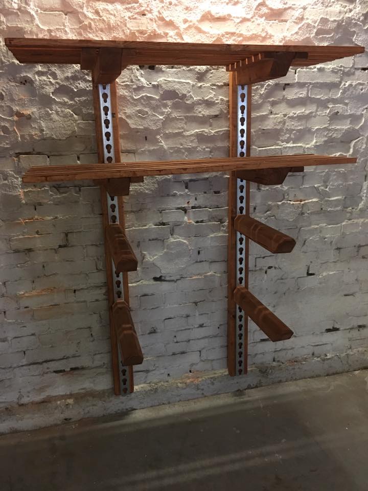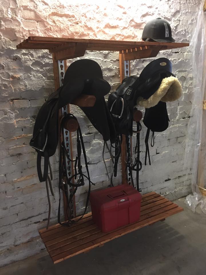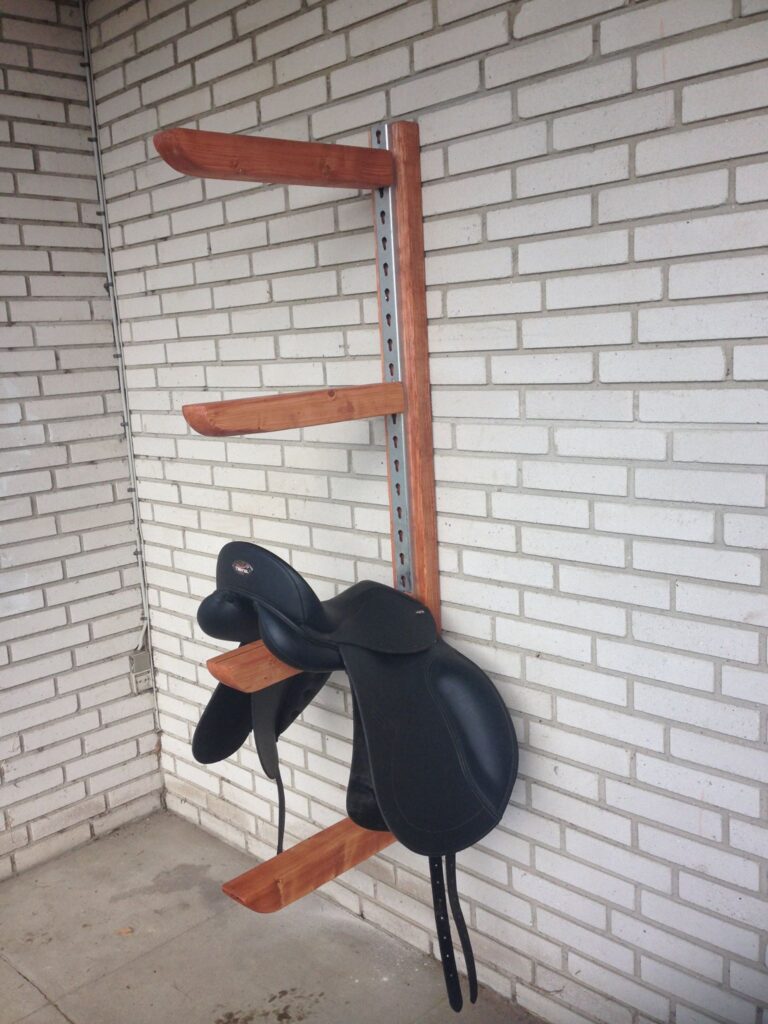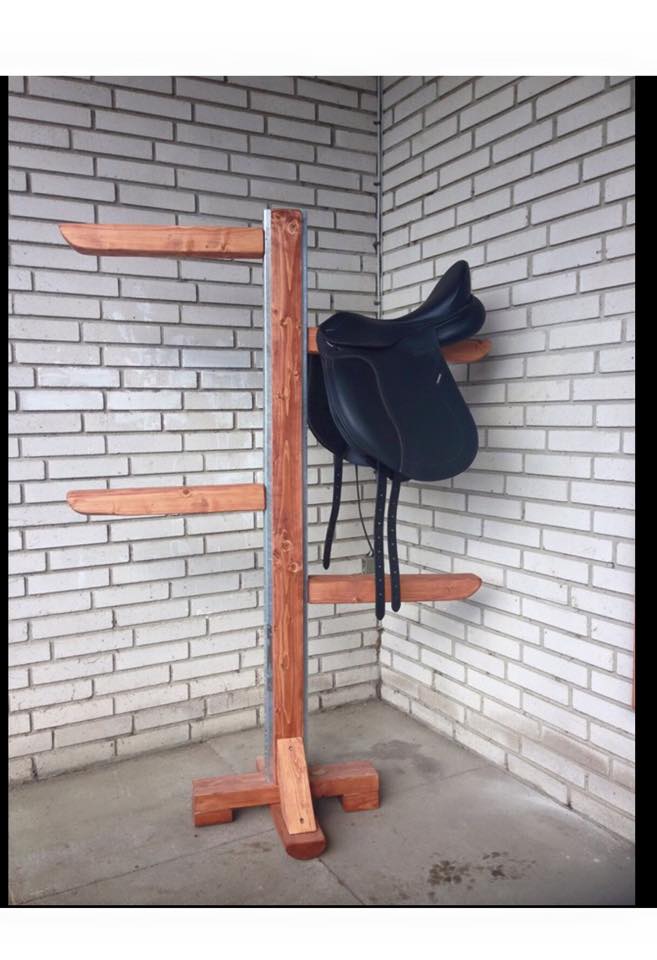 Her på kan du så sætte hylder, sadelholder og trenseholder efter behov og det hele kan justeres rundt i højde.